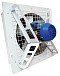 Осевой вентилятор состоит из монтажной сетки, на которую закреплено рабочее колесо изготовленное из композитных материалов и электродвигатель, а также из рамки с жалюзи, которая закрывает вентилятор с внешней стороны помещения. Рабочее колесо защищено решеткой.