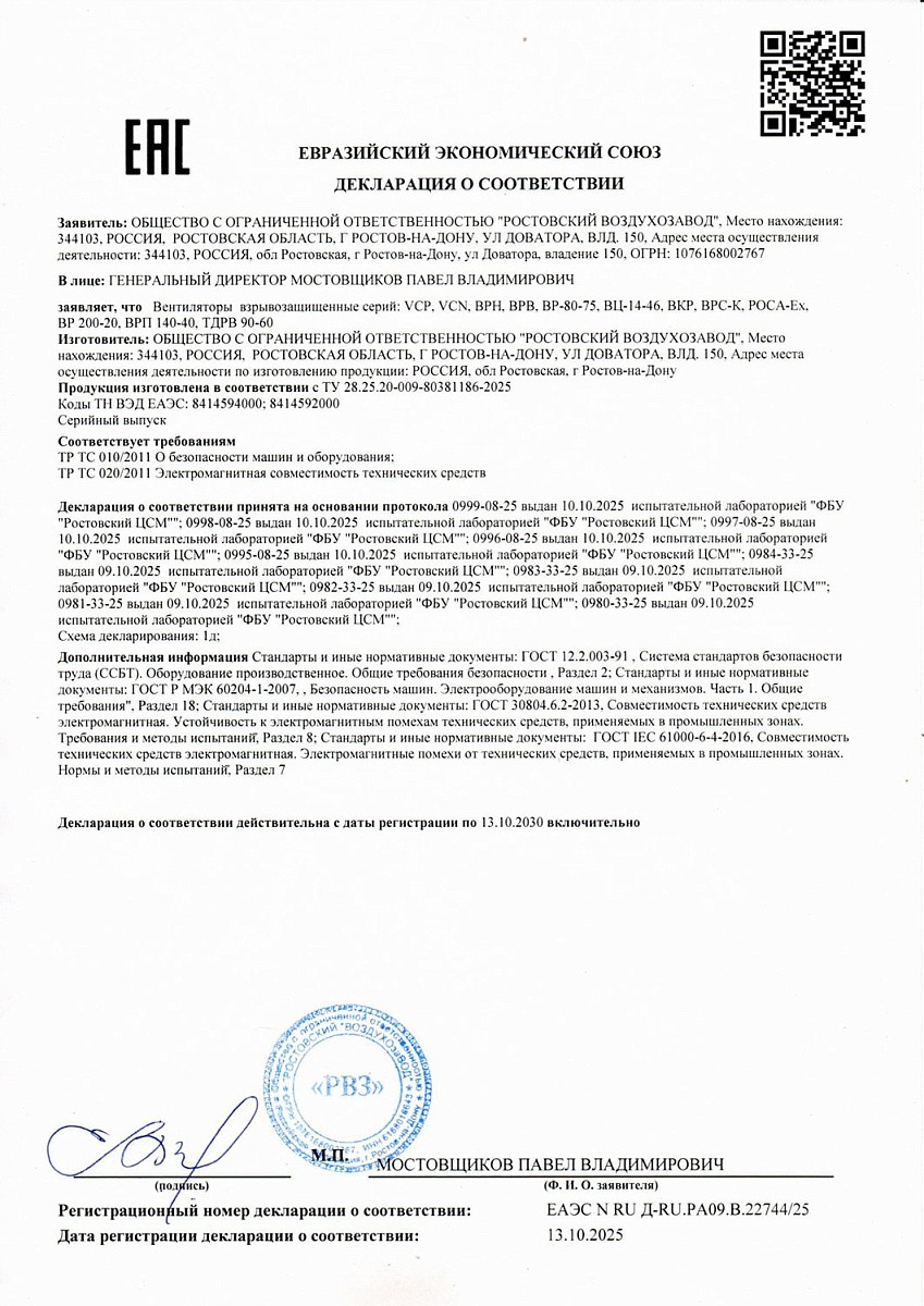Декларация соответствия на вентиляторы взрывозащищенные