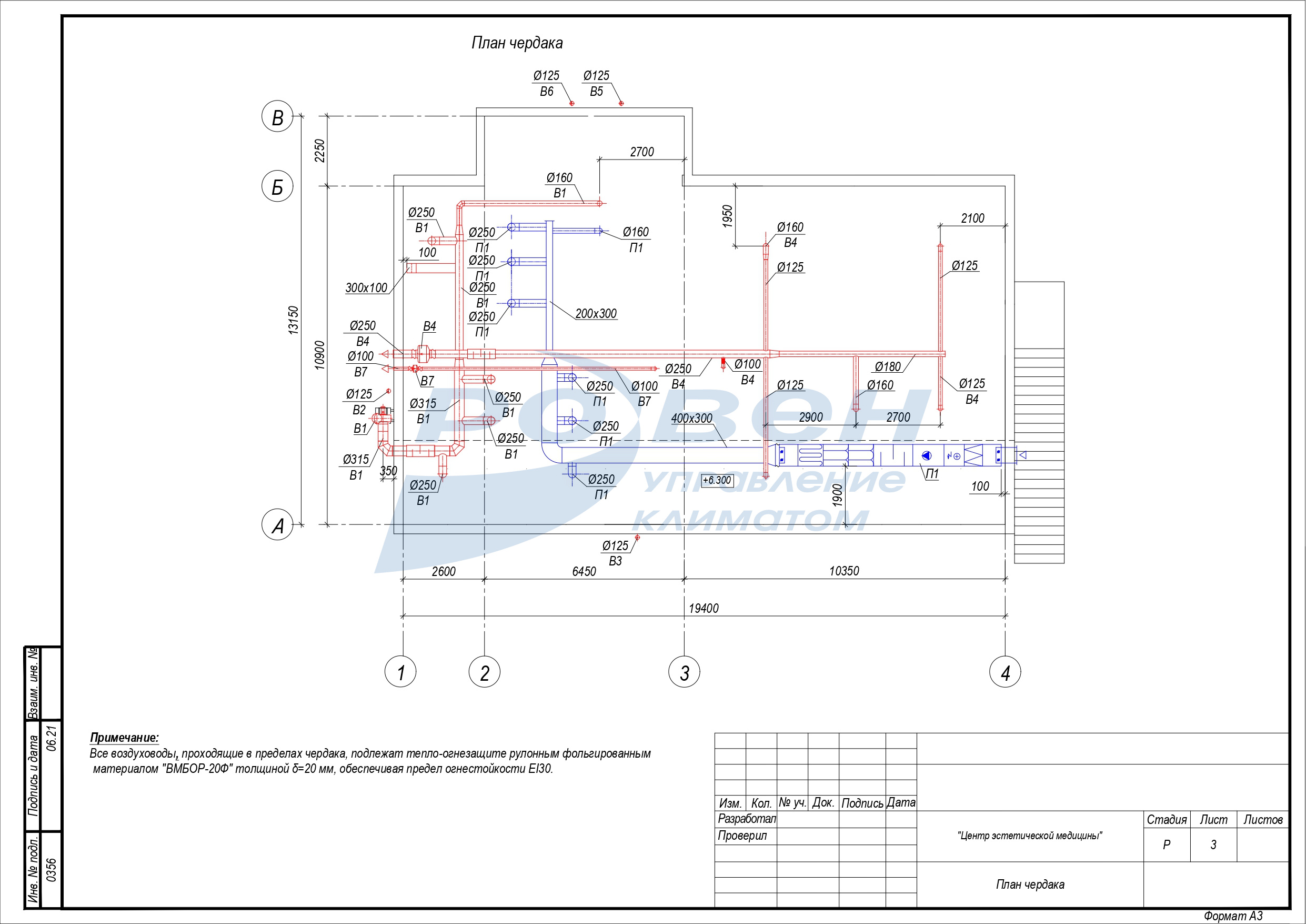 Воздухообмены в помещениях медицинского назначения определены по кратности в зависимости от класса чистоты. Для помещений класса чистоты Б предусмотрена 3-х ступенчатая очистка воздуха.